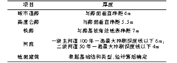 表3 最小覆土厚度